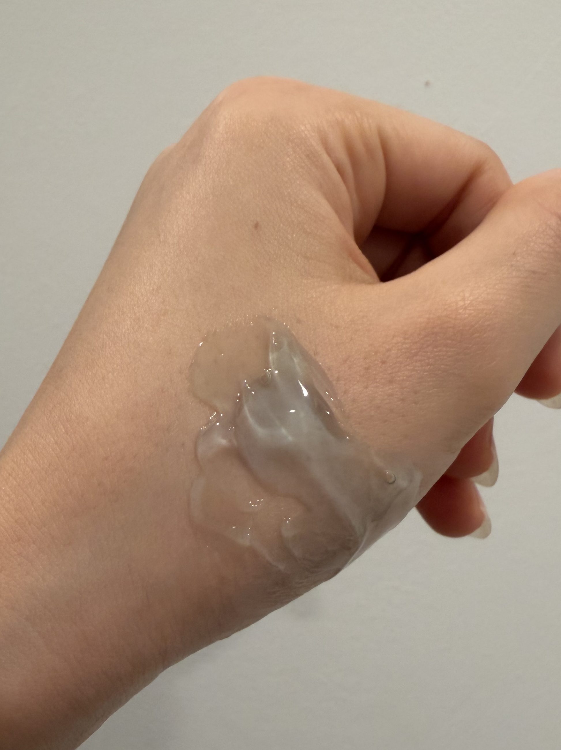 It has a gel-like texture, feels very hydrating, absorbs quickly, and doesn’t feel sticky at all. My skin definitely feels much more moisturized since I started using this product.